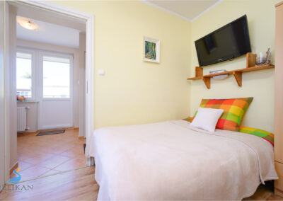 • wersalka, łóżko jednoosobowe, komoda, szafa, stolik, 2 fotele,TV, sprzęt plażowy;